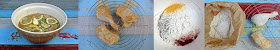 Come ho già detto in occasione della mia prima proposta, non avevo mai cucinato il pollo fritto con questo metodo e, come credo si veda bene anche dalle foto, non posso fingere di non aver incontrato delle difficoltá: i pezzi di pollo infarinati hanno perso parte della loro copertura, uscendo dalla frittura un po' spogliati, per così dire. Penso di averli lasciati asciugare troppo, una volta tolti dalla marinatura nel te. Dovrò perfezionare la tecnica, ovviamente, e siccome si sa che solo la pratica rende perfetti, prevedo frequenti cene a base di pollo fritto nel mio futuro. Nessun problema, invece, per quanto riguarda la panatura con uovo e pangrattato. Questa volta, dopo la marinatura nel buttermilk, ho optato per il metodo pangrattato-uovo-pangrattato ottenendo una crosta spessa, croccante, asciutta e veramente deliziosa.